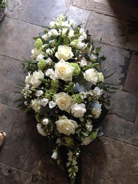 Whites, creams and greens casket spray